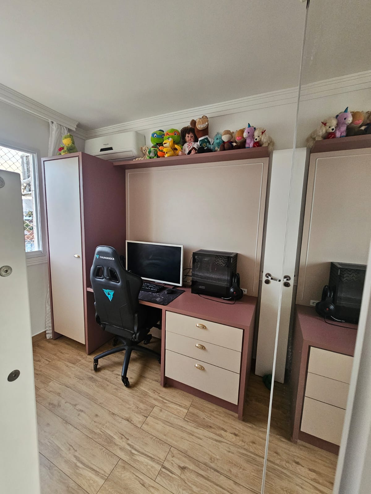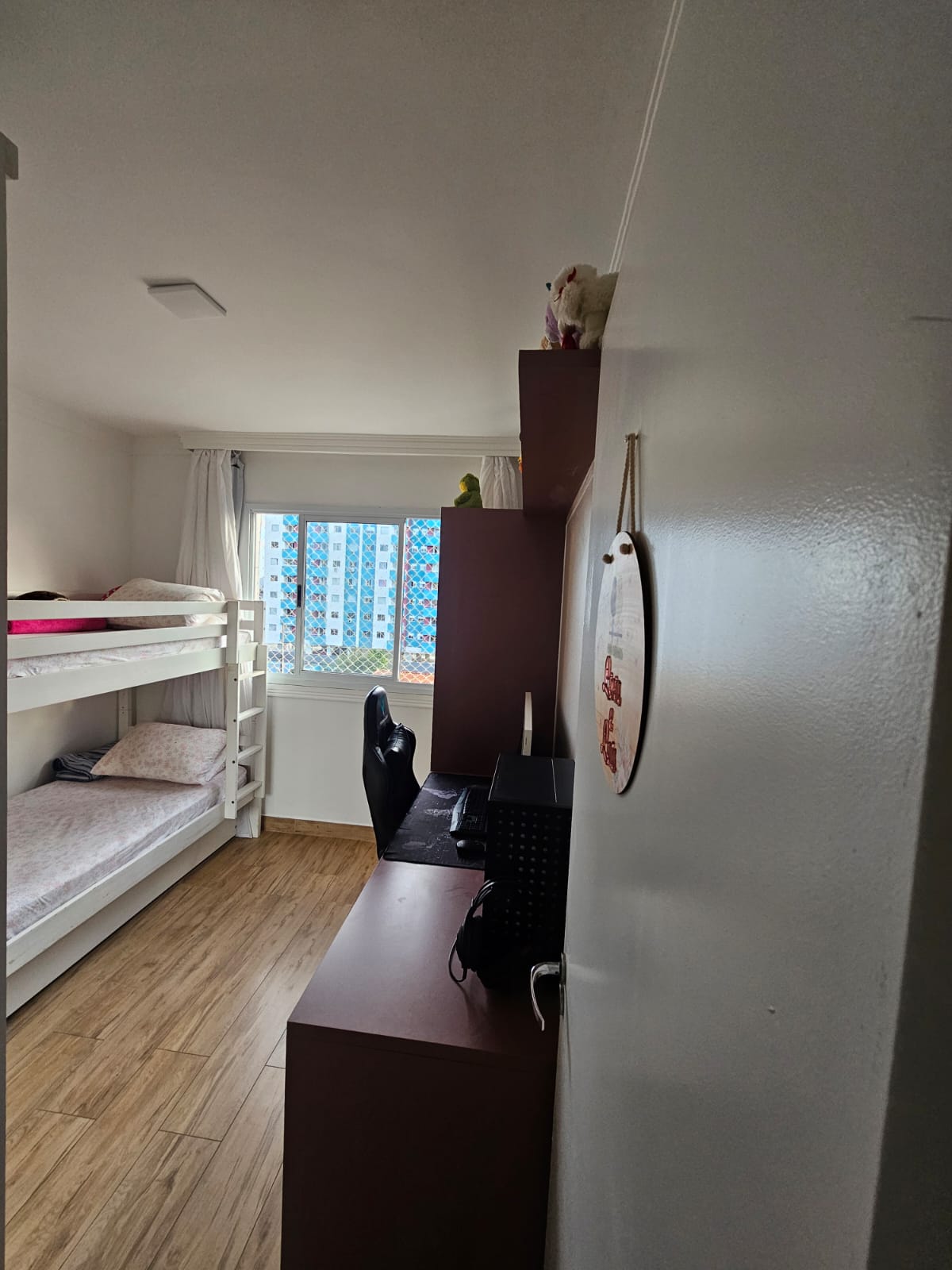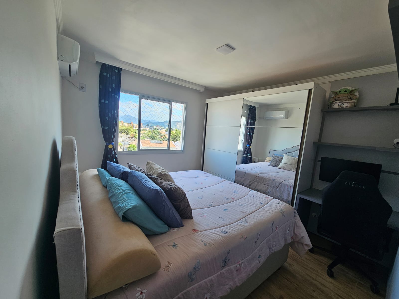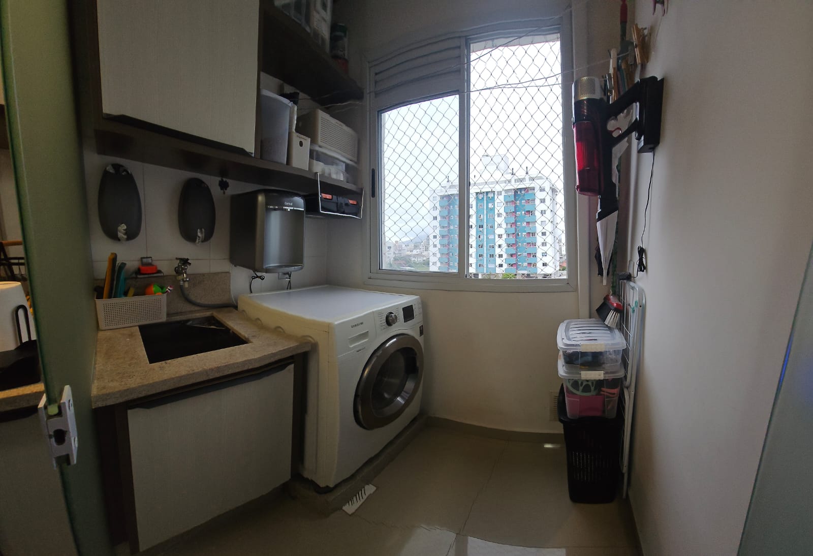 Conta com 2 dormitórios, 1 banheiro, sala e cozinha integradas, sacada fechada em Reiki e vista livre em todas as janelas. O imóvel possui telas em todas as janelas, sistema inteligente compatível com Alexa, água quente nas torneiras, além de 3 aparelhos de ar-condicionado.