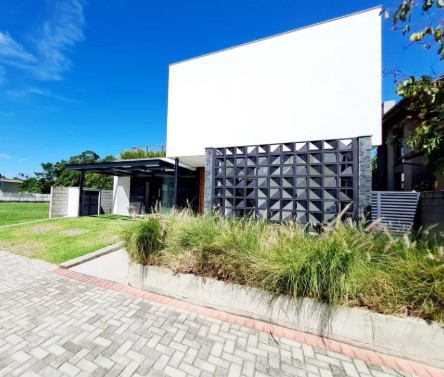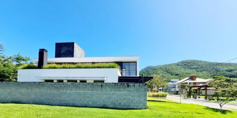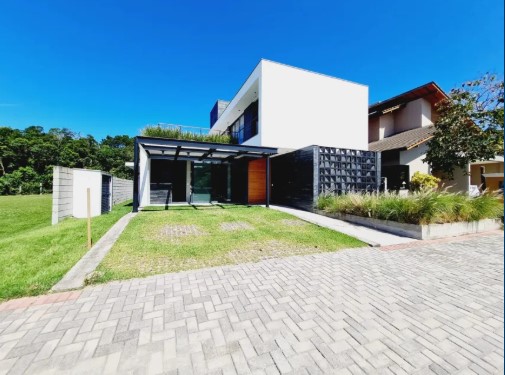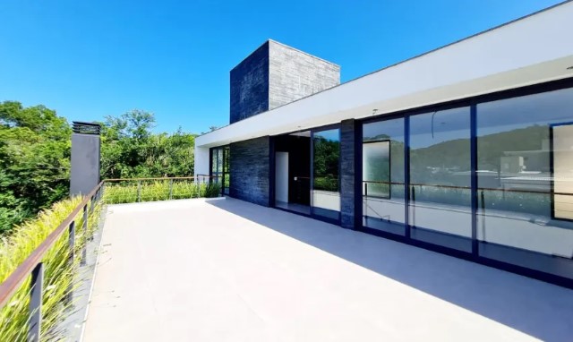 Localizada no sul da ilha em condomínio fechado o imóvel possuí 322m² de área construída com uma arquitetura moderna que destaca-se pela amplitude, iluminação natural e pela integração total dos ambientes em sua área social.